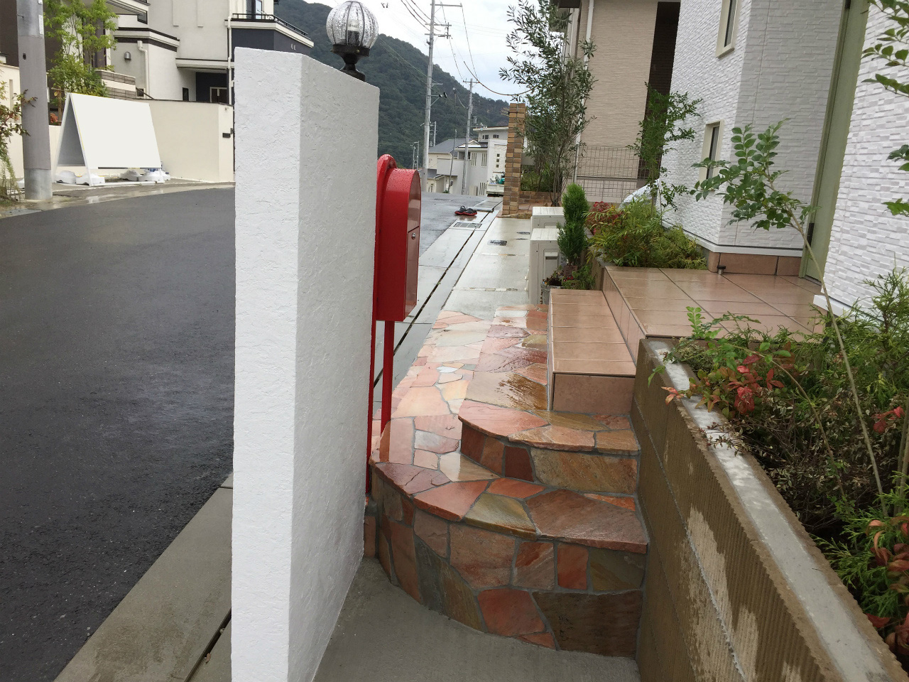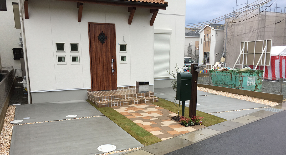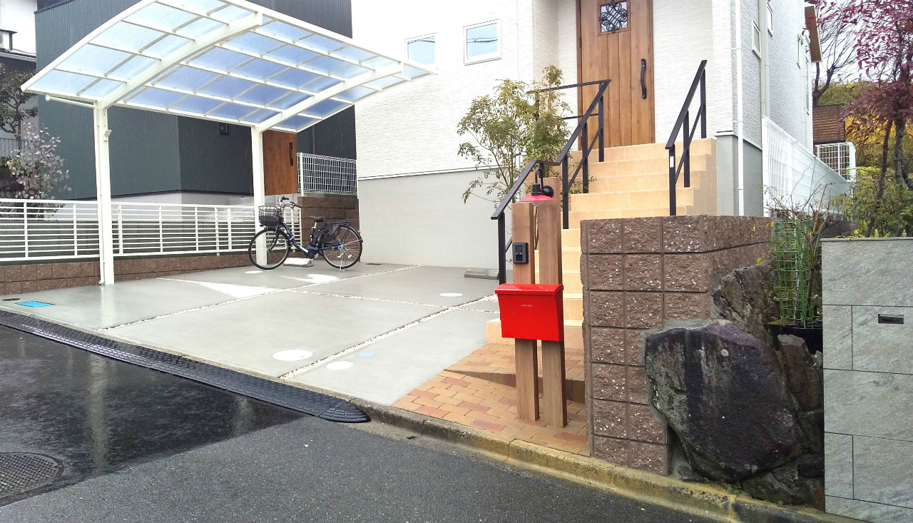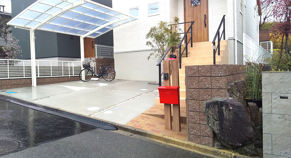 カーポート・ブロック工事・玄関周り ポスト・インターホン・駐車場・アプローチ・門構え・犬走り・タイル工事・左官工事